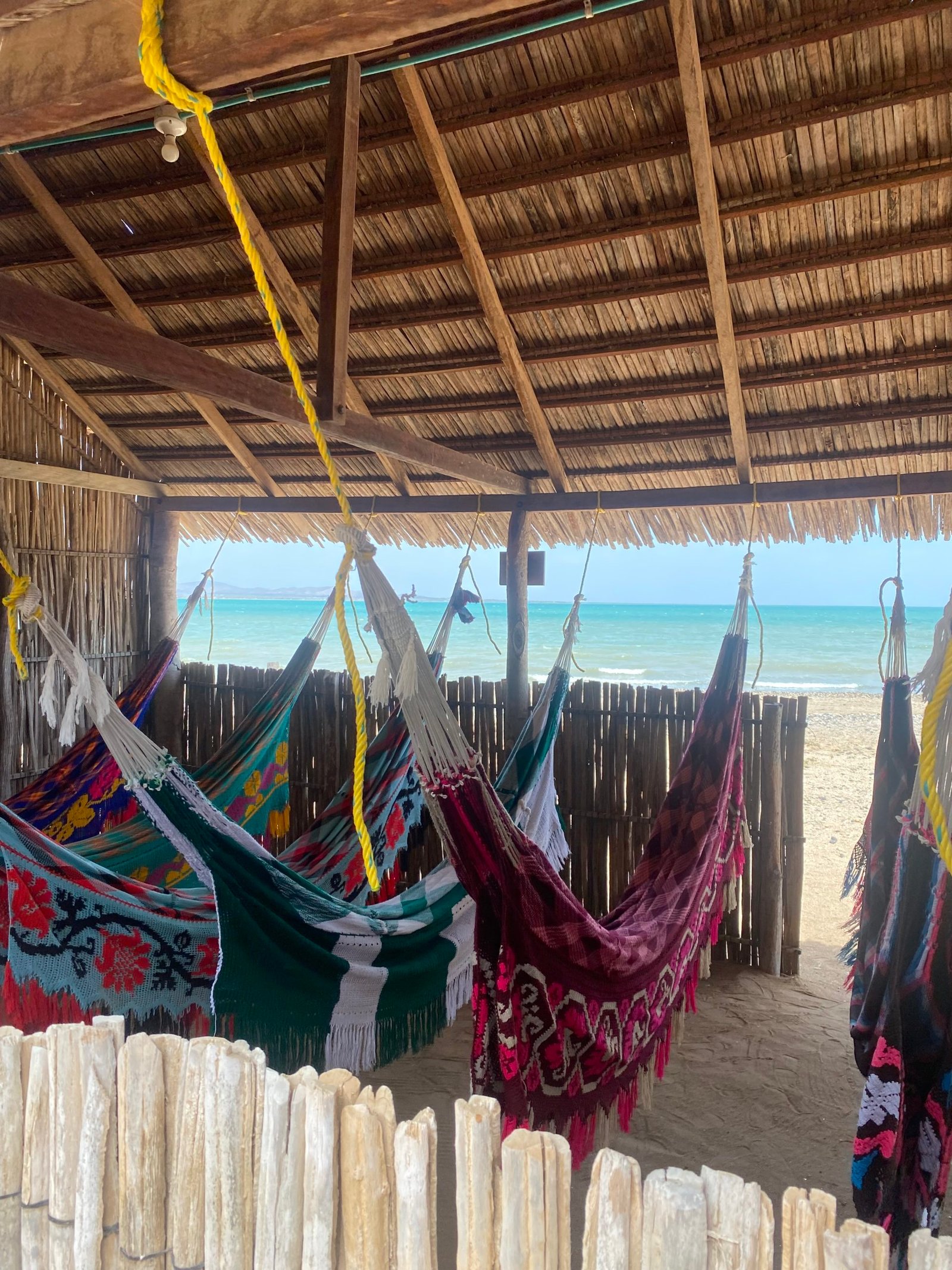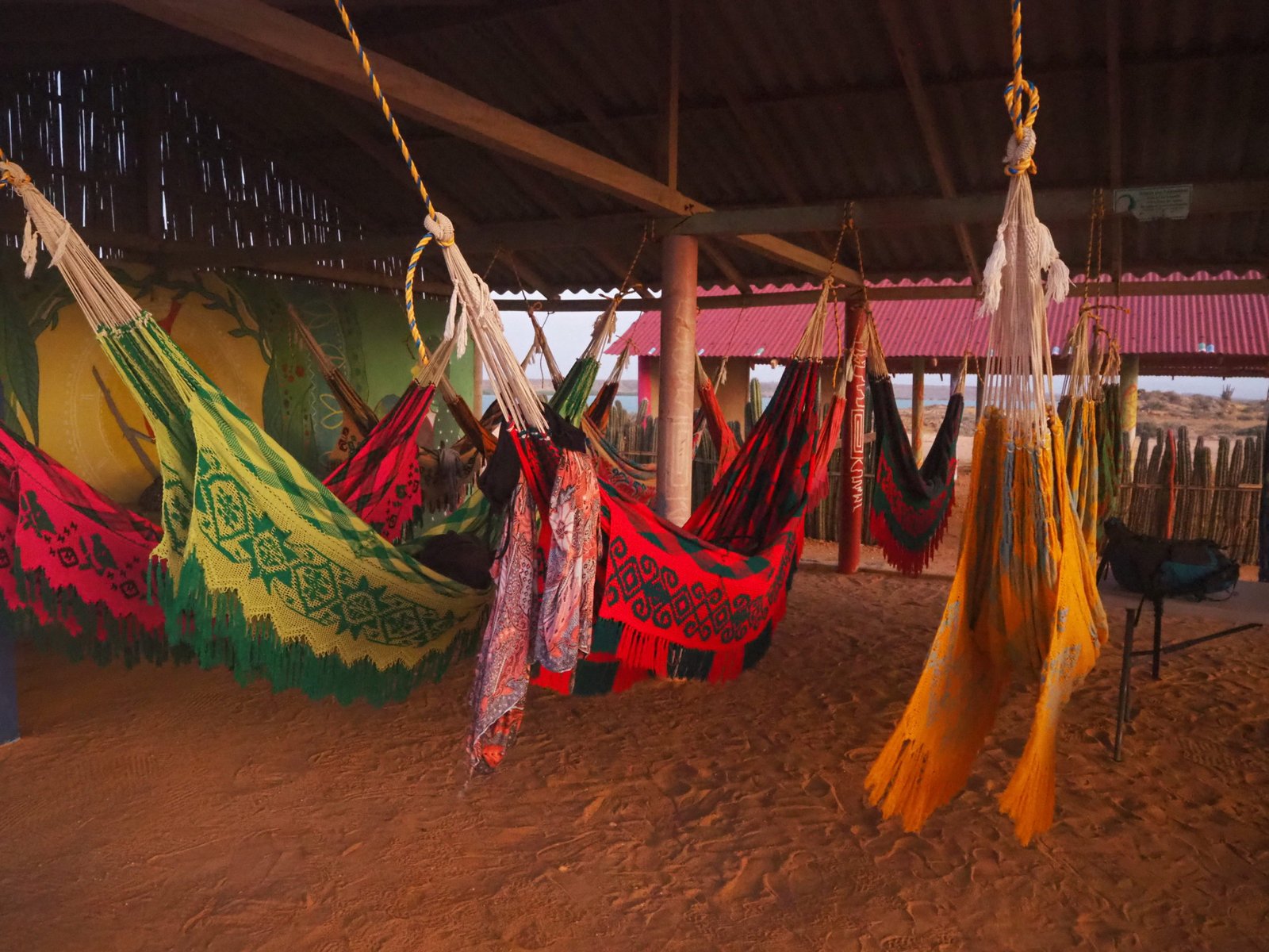 La nuit nous dormions en hamac… Bien que je redoutais un peu les nuits de cette manière là en plein désert. Je dois avouer que j’ai très bien dormis et que j’en aurais bien ramené un avec moi !